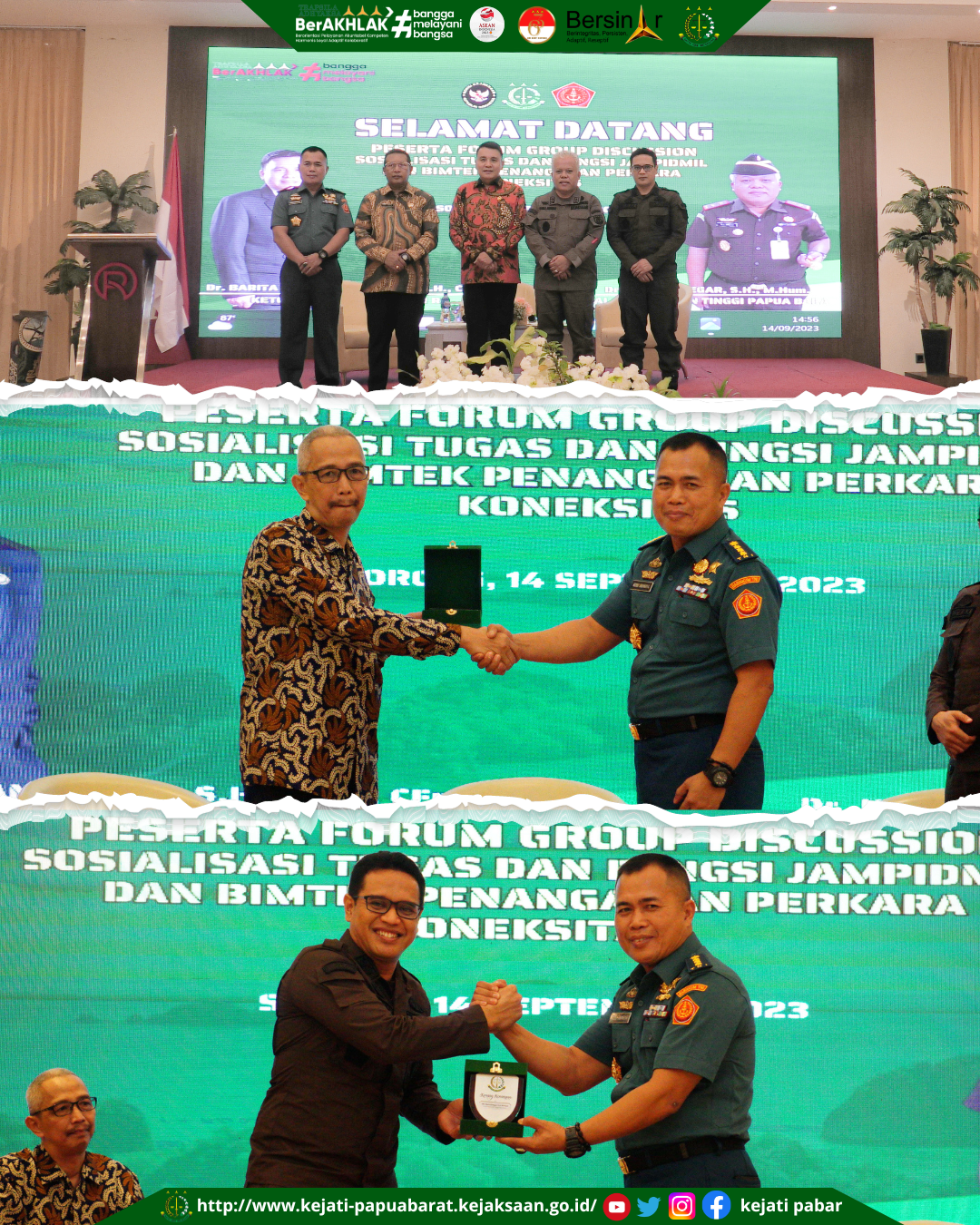Forum Group Discussion Sosialisasi Tugas dan Fungsi Jampidmil dan Bimbingan Teknis Penanganan Perkara Koneksitas bertempat di Rylich Panorama Hotel, Kota Sorong, Kamis (14/9/2023).