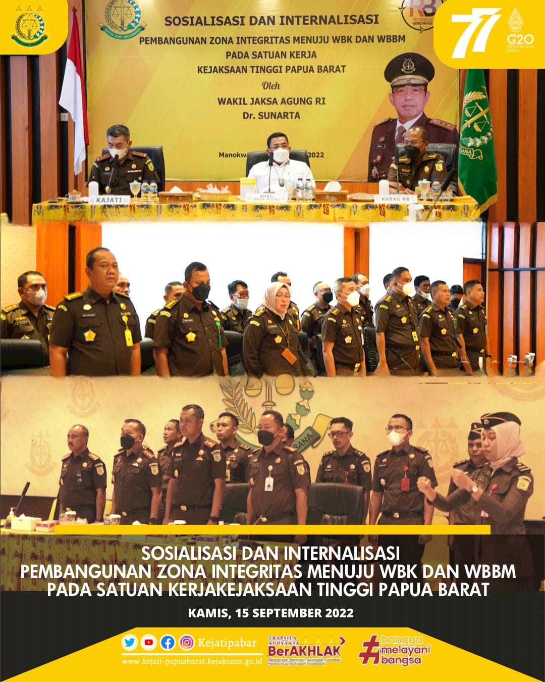 Selanjutnya Wakil Jaksa Agung Dr. Sunarta bersama rombongan disambut seluruh pegawai Kejaksaan Tinggi Papua Barat dan Kejaksaan Negeri Manokwari bertempat di depan Kantor Kejaksaan Tinggi Papua Barat, setelah itu Wakil Jaksa Agung Dr. Sunarta didampingi Kepala Kejaksaan Tinggi Papua Barat Juniman Hutagaol, S.H., M.H langsung meninjau Kantor Kejaksaan Tinggi Papua dengan melihat sarana prasarana yang ada. Dimana Kantor Kejaksaan Tinggi Papua Barat merupakan bekas Kantor Bupati Manokwari yang dipergunakan sementara ini.