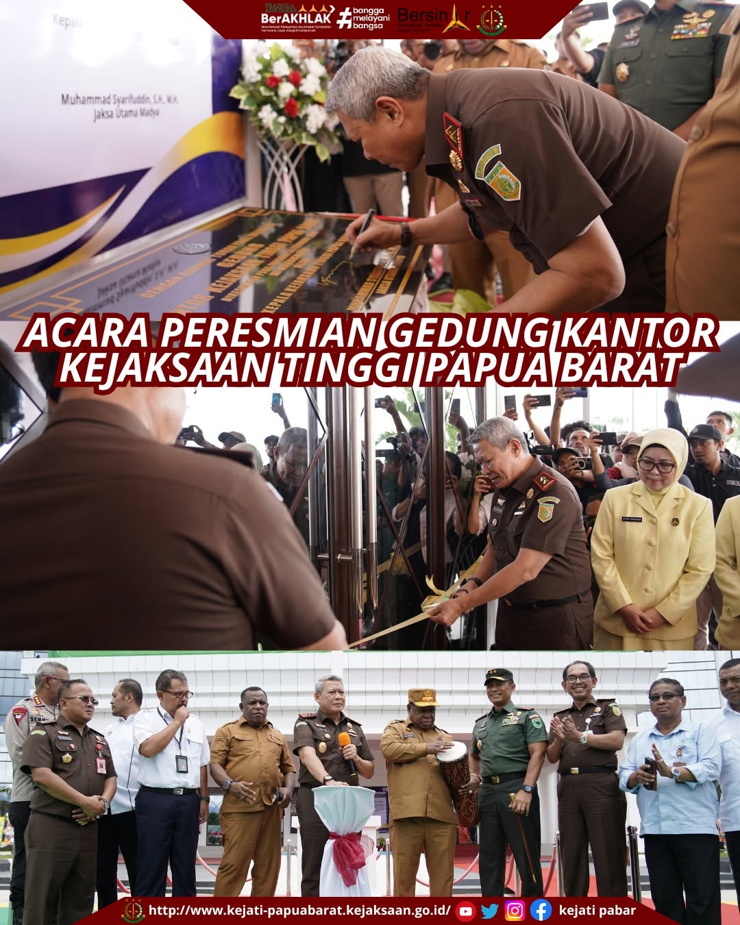 Senin 24 Februari 2025, Kepala Kejaksaan Tinggi Papua Barat Meresmikan Gedung Kantor Kejaksaan Tinggi Papua Barat dengan melakukan pengguntingan pita dan penandatanganan prasasti.