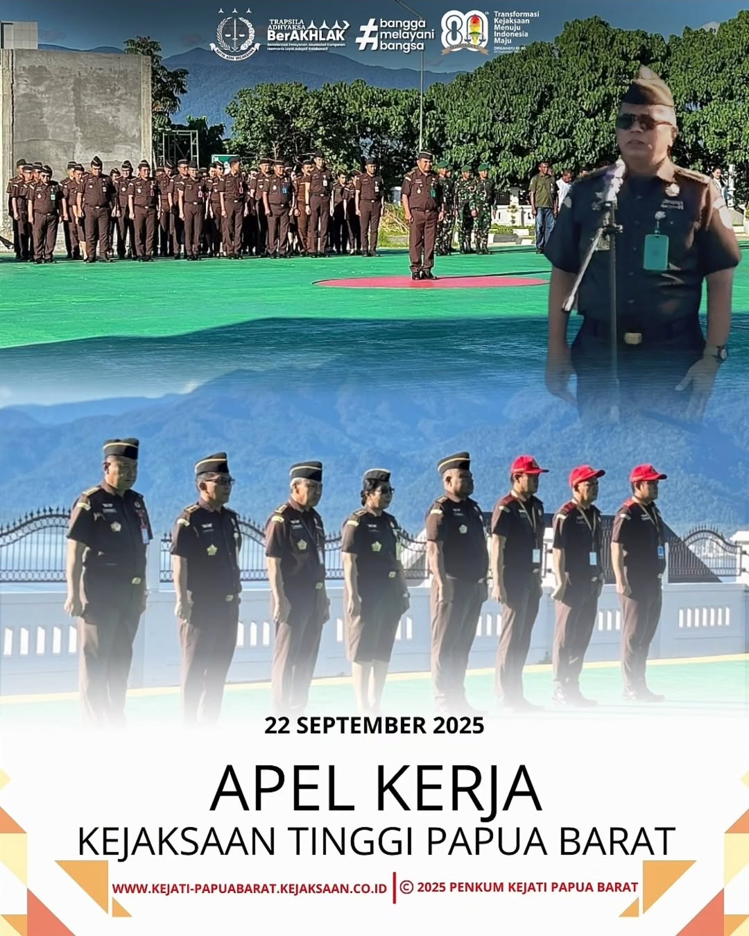 Senin, 22 September 2025 Bertempat di kantor Kejaksaan Tinggi Papua Barat dilaksanakan Apel Kerja yang dipimpin oleh Asisten Intelijen Muhammad Bardan, S.H., M.H.