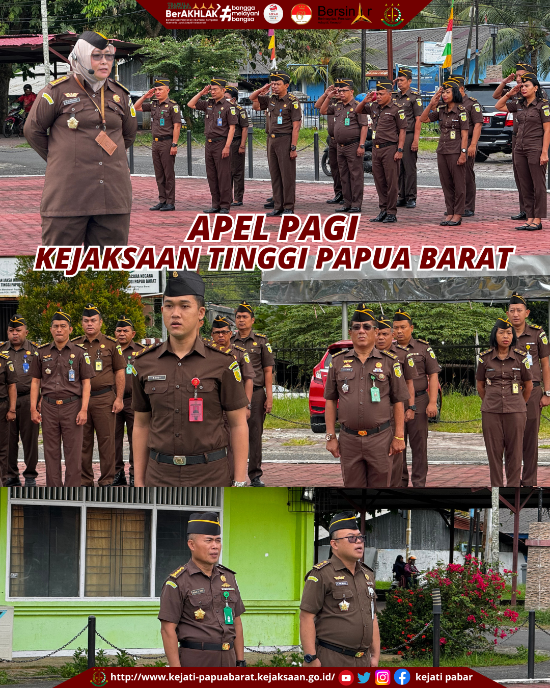 Apel Pagi Kejaksaan Tinggi Papua Barat bertindak sebagai pemimpin apel Asisten Tindak Pidana Umum (Aspidum), Djasmaniar, S.H., M.H bertempat di halaman Kejati Papua Barat Senin (12/02/2024).