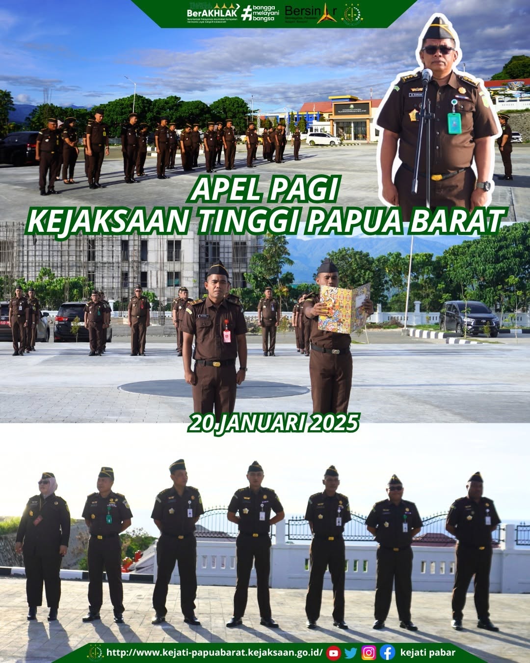 Senin, 20 Januari 2025. Asisten Intelijen Muhammad Bardan, S.H., M.H. memimpin Apel Pagi Perdana di Kantor Kejaksaan Tinggi Papua Barat.