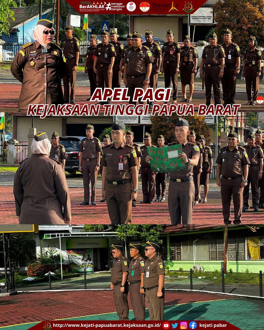 Apel Pagi Kejaksaan Tinggi Papua Barat dipimpin Asisten Tindak Pidana Umum, Djasmaniar, S.H., M.H bertempat di halaman Kejati Papua Barat, Senin (27/05/2024).