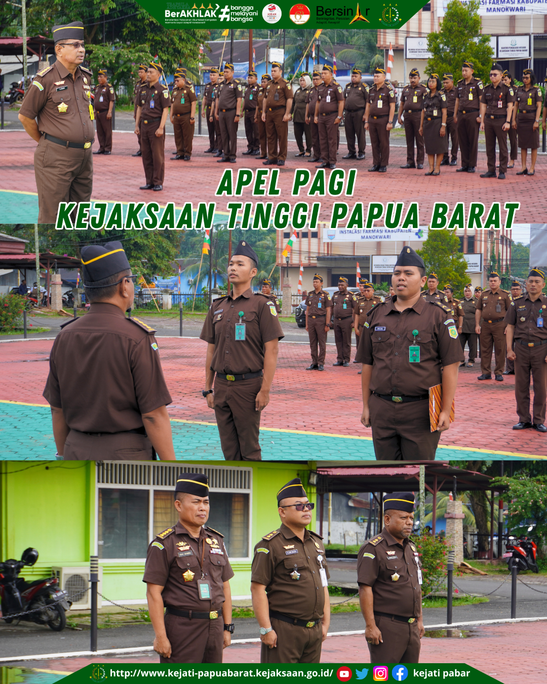 Apel Pagi Kejaksaan Tinggi Papua Barat dipimpin Asisten Pembinaan, Dr. Abdur Kadir, S.H., M.H bertempat di halaman Kejati Papua Barat Senin (27/11/2023).