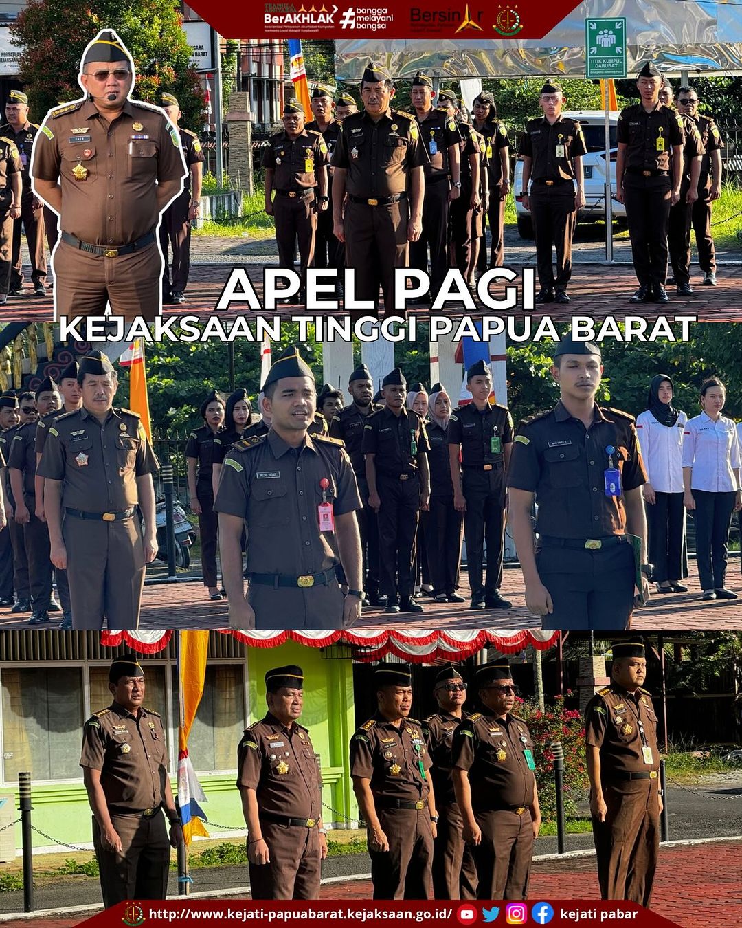 Apel Pagi Kejaksaan Tinggi Papua Barat yang dipimpin oleh Asisten Tindak Pidana Khusus Abun Hasbullah Syambas, S.H., M.H. bertempat di Halaman Kantor Kejaksaan Tinggi Papua Barat, Senin (29/07/2024).