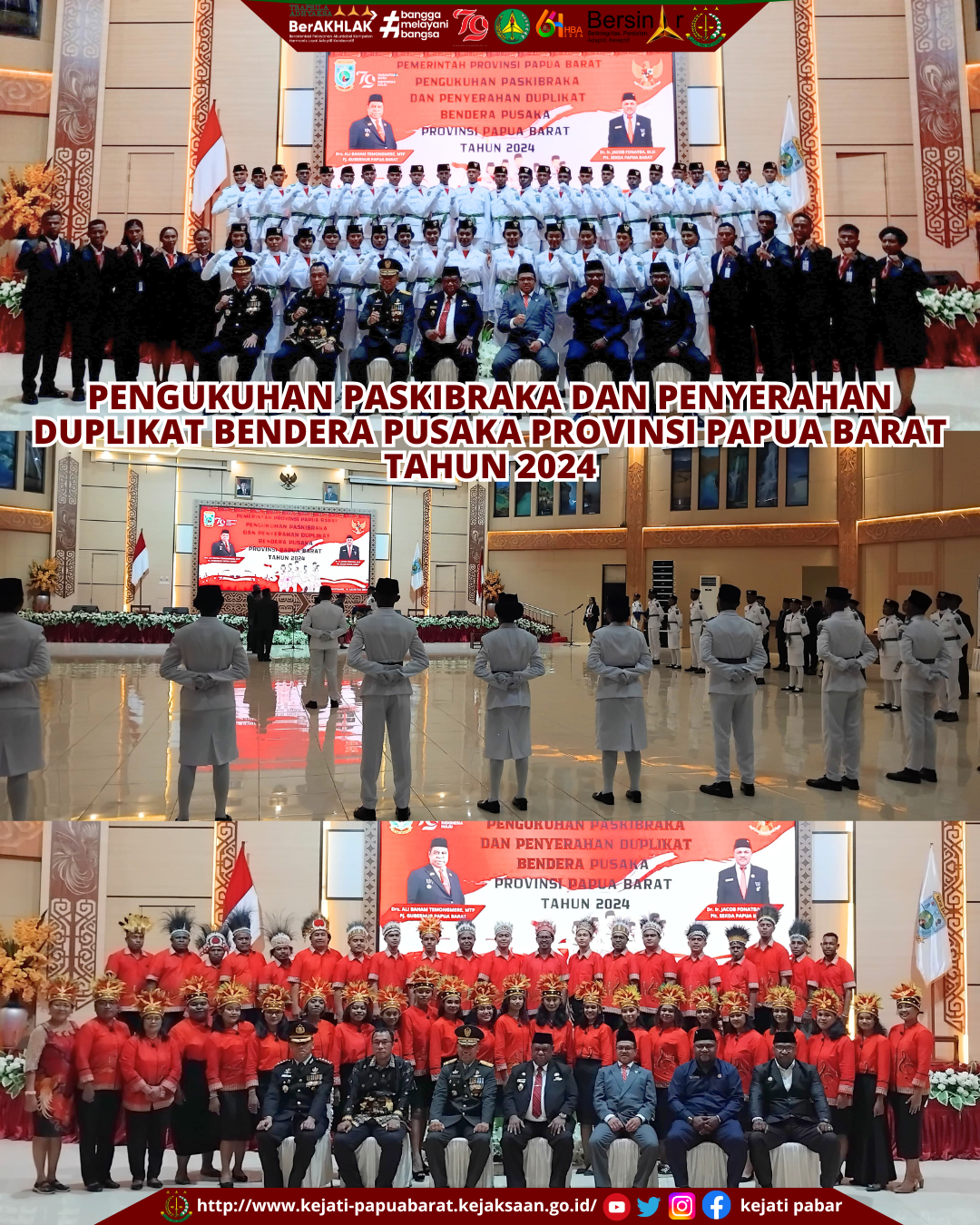Kamis, 15 Agustus 2024 Pukul 19.00 WIT, Kepala Kejaksaan Tinggi Papua Barat yang diwakili Asisten Pengawasan Imam Makmur Saragih Sidabutar, S.H., M.H., menghadiri Acara Pengukuhan Paskibraka dan Penyerahan Duplikat Bendera Pusaka Provinsi Papua Barat tahun 2024, bertempat di Gedung PKK Kompleks Kantor Gubernur.