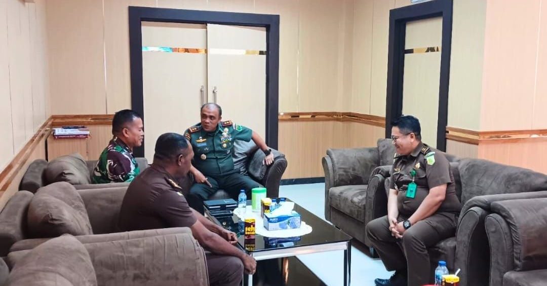 Kamis, 6 Desember 2023, Asisten Pidana Militer Kejaksaan Tinggi Papua Barat (Aspidmil Kejati PaBar) Kolonel Laut (H) Ridho Sihombing, SH., MH didampingi Kasi Uheksi Benony Andrian Kombado, SH., MH., dan Kasidak Frangky Ticoalu, SH melakukan kunjungan kerja ke Kodam XVIII/Kasuari yang diterima Pangdam XVIII/Kasuari Mayjen TNI Ilyas Alamsyah Harahap didampingi Kakumdam XVIII/Kasuari Kolonel Chk Firman, SH.