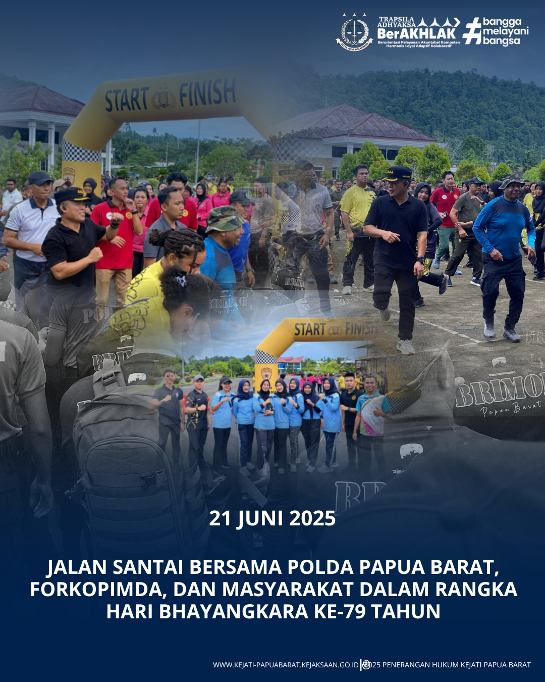 Pada hari Sabtu tanggal 21 Juni 2025 bertempat di Polda Papua Barat, Kepala Kejaksaan Tinggi Papua Barat yang diwakili Asisten Pidana Militer mengikuti Kegiatan Jalan Santai Bersama Polda Papua Barat.,Forkopimda, dan Masyarakat dalam Rangka Hari Bhayangkara ke- 79 Tahun.