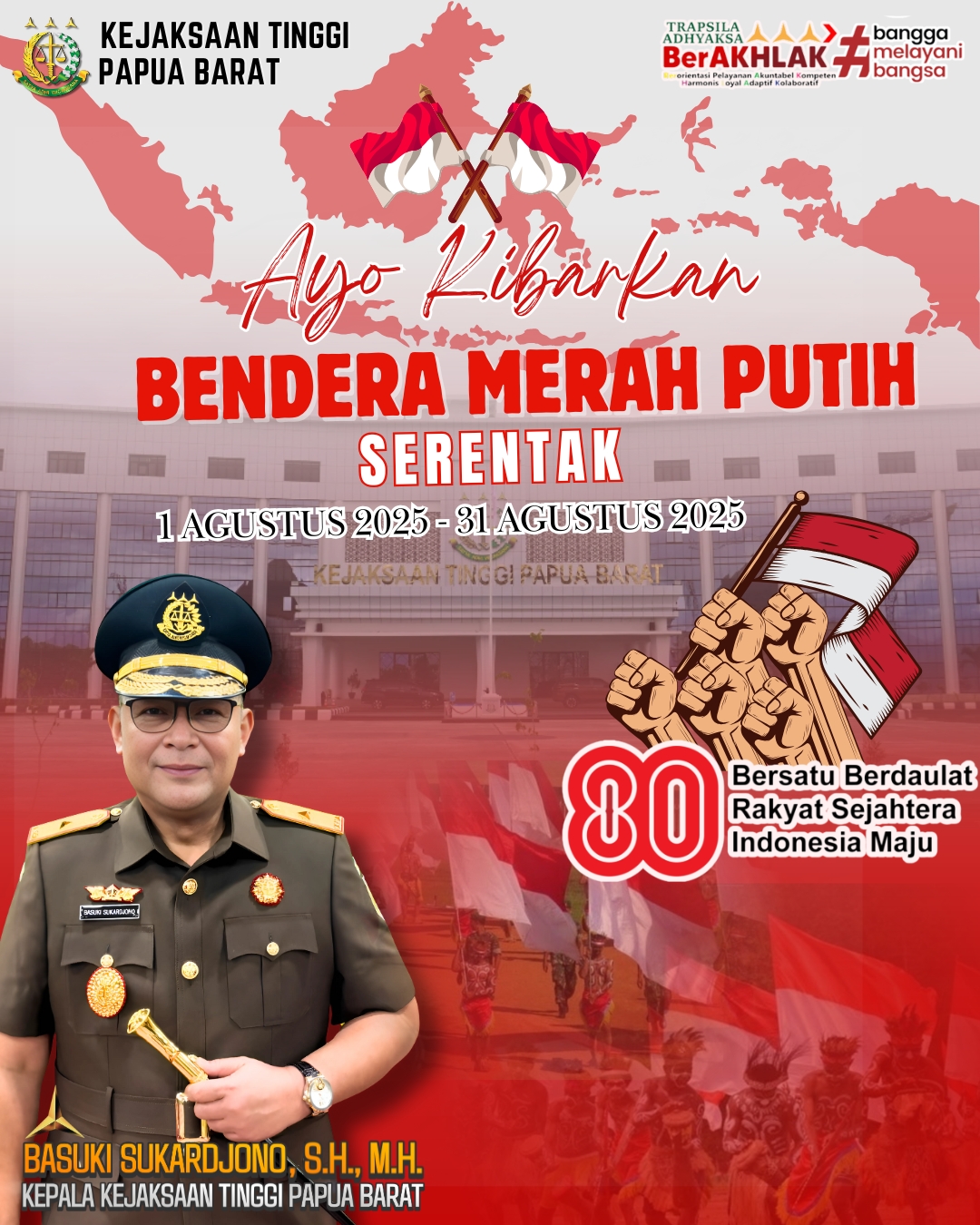 Ayo Serentak Kibarkan Merah Putih mulai Tanggal 1 Agustus 2025 sampai 31 Agustus 2025 (Kejati Papua Barat)