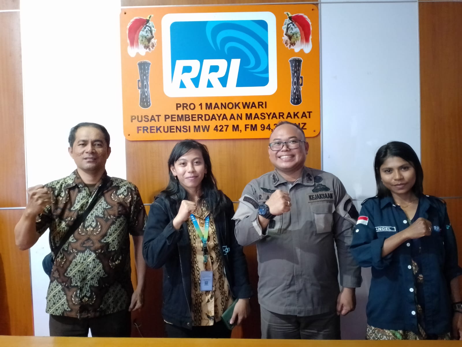 Sebagai narasumber Plh. Asintel Kejati Papua Barat, Raden Arie Wijaya Kawedhar, S.H dan Kasi E Bidang Intelijen, Hadjat, S.H, yang dipandu Eunike Pabuntang penyiar RRI Manokwari.