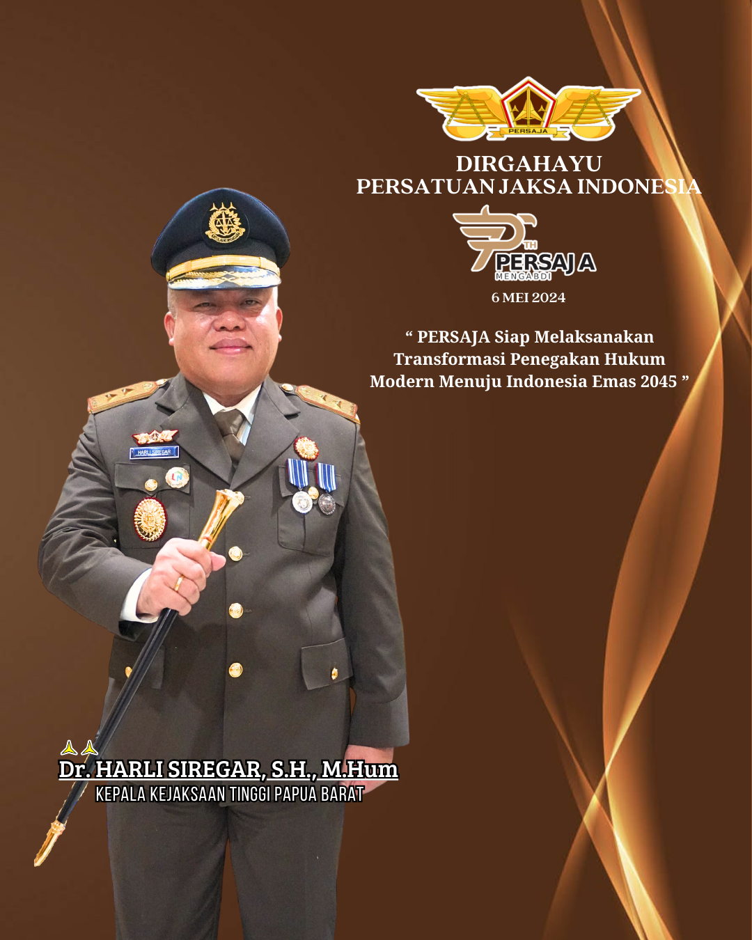 Kepala KejaksaanTinggi Papua Barat Dr. Harli Siregar, S.H., M.Hum beserta Jajaran mengucapkan Dirgahayu Persatuan Jaksa Indonesia (PERSAJA),