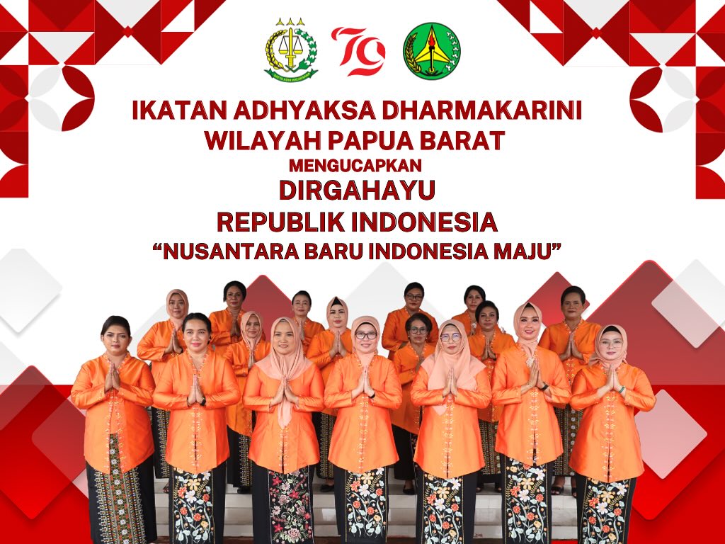Ikatan Adhyaksa Dharmakarini (IAD) Wilayah Papua Barat mengucapkan Dirgahayu Republik Indonesia dengan tema “Nusantara Baru Indonesia Maju”, 17 Agustus 2024.