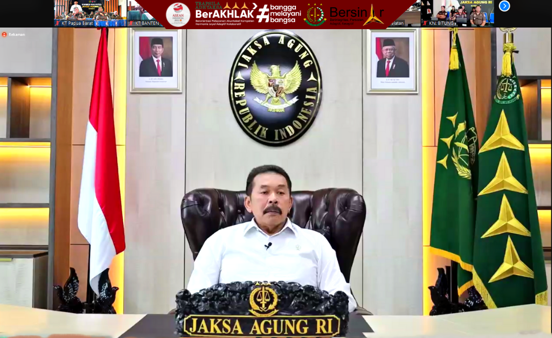 Senin, 17 April 2023 secara virtual dari Gedung Utama Kejaksaan Agung, Jaksa Agung Burhanuddin memberikan pengarahan pada Acara Kunjungan Kerja Virtual dalam rangka menyambut Hari Raya Idul Fitri 1444 H.