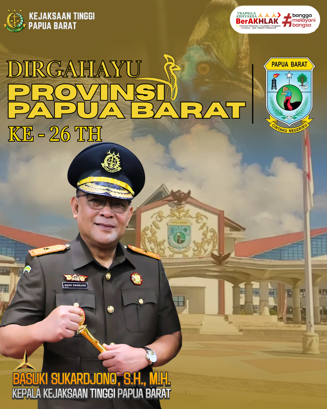 Kepala Kejaksaan Tinggi Papua Barat Basuki Sukardjono, S.H., M.H. beserta jajaran Mengucapkan Dirgahayu Provinsi Papua Barat Ke -26 Tahun 2025
