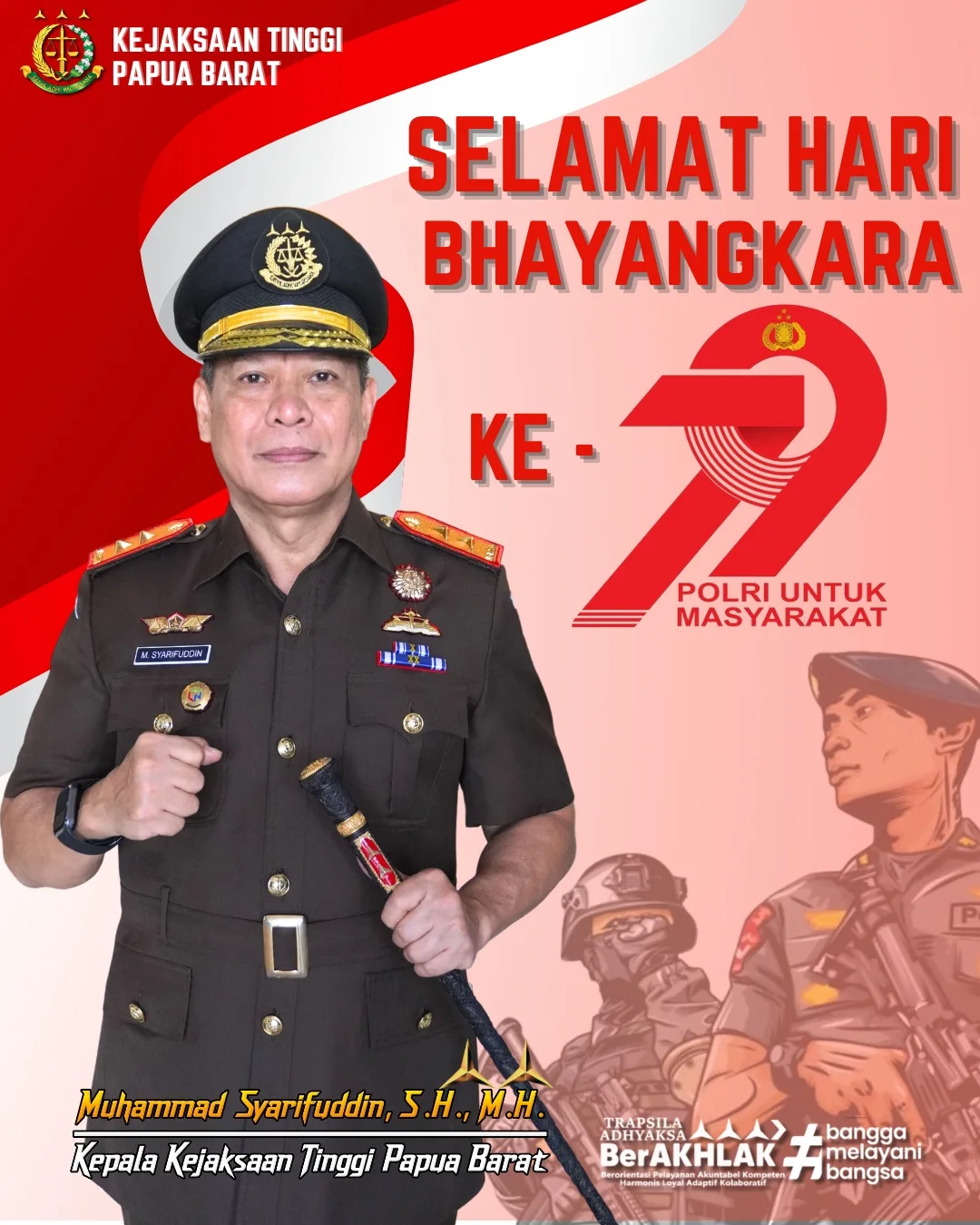 KAJATI PAPUA BARAT BESERTA JAJARAN MENGUCAPKAN SELAMAT HARI BHAYANGKARA KE- 79 TAHUN