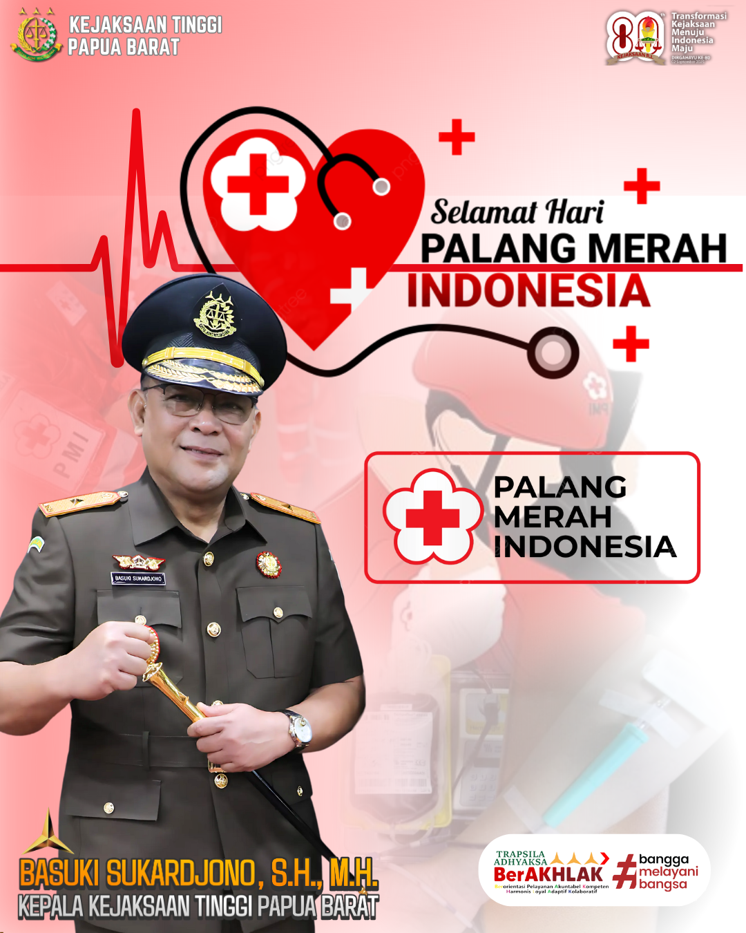 Kepala Kejaksaan Tinggi Papua Barat, Basuka Sukardjono, S.H., M.H. beserta jajaran mengucapkan Selamat Memperingati Hari Palang Merah Indonesia.