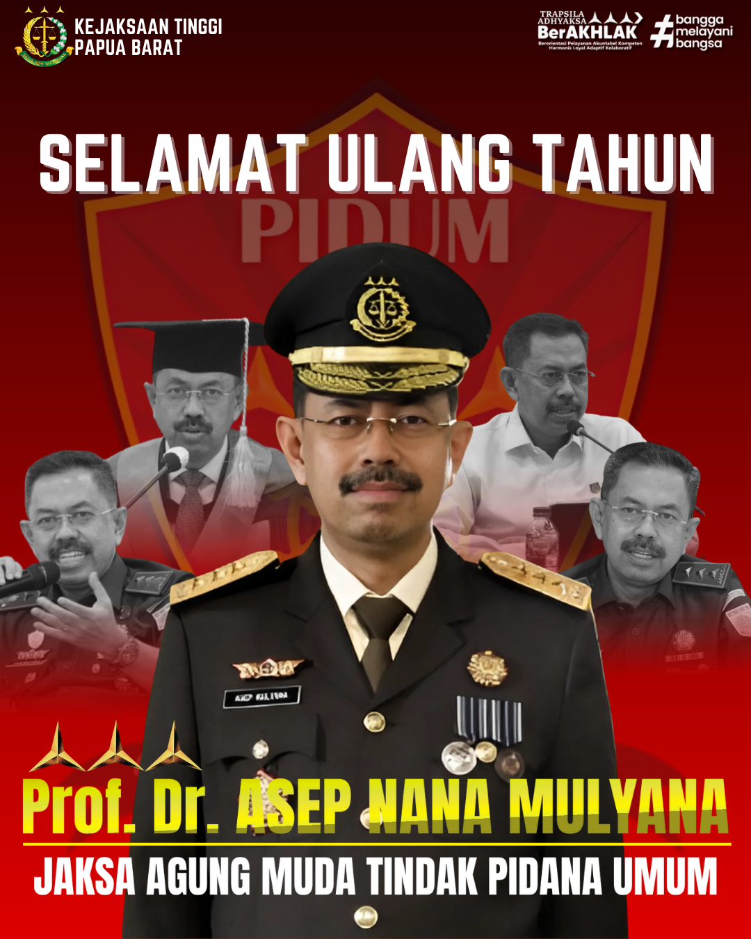 Kepala Kejaksaan Tinggi Papua Barat Basuki Sukardjono, S.H., M.H. beserta jajaran mengucapkan Selamat Ulang Tahun Jaksa Agung Muda Tindak Pidana Umum Prof. Dr. Asep Nana Mulayana.