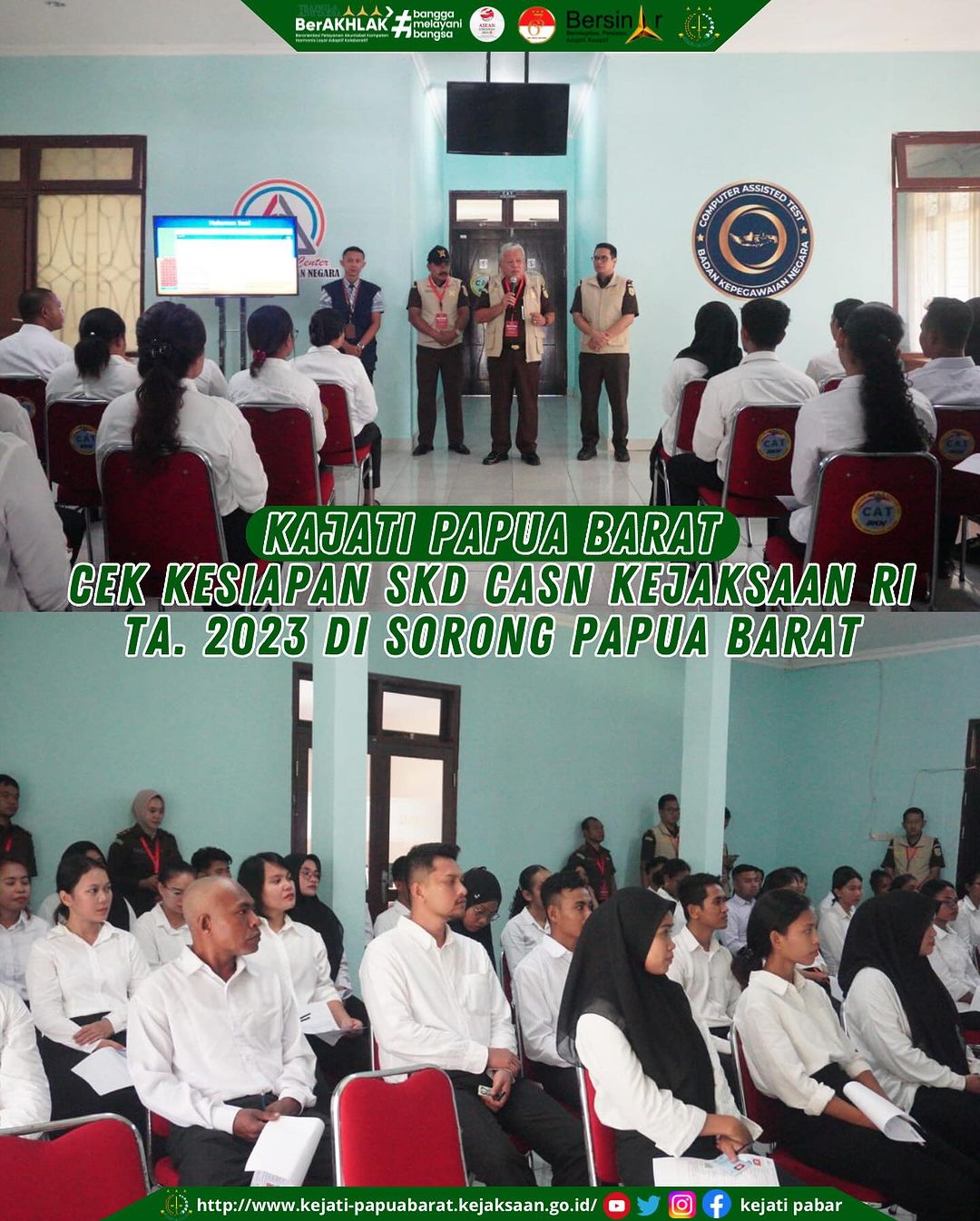 Sabtu, 11 November 2023 bertempat di kantor UPT BKN Kota Sorong, Papua Barat Daya, Kepala Kejaksaan Tinggi Papua Barat Dr. Harli Siregar, SH., M.Hum mengecek kesiapan pelaksanaan tes SKD CASN Kejaksaan RI TA 2023.