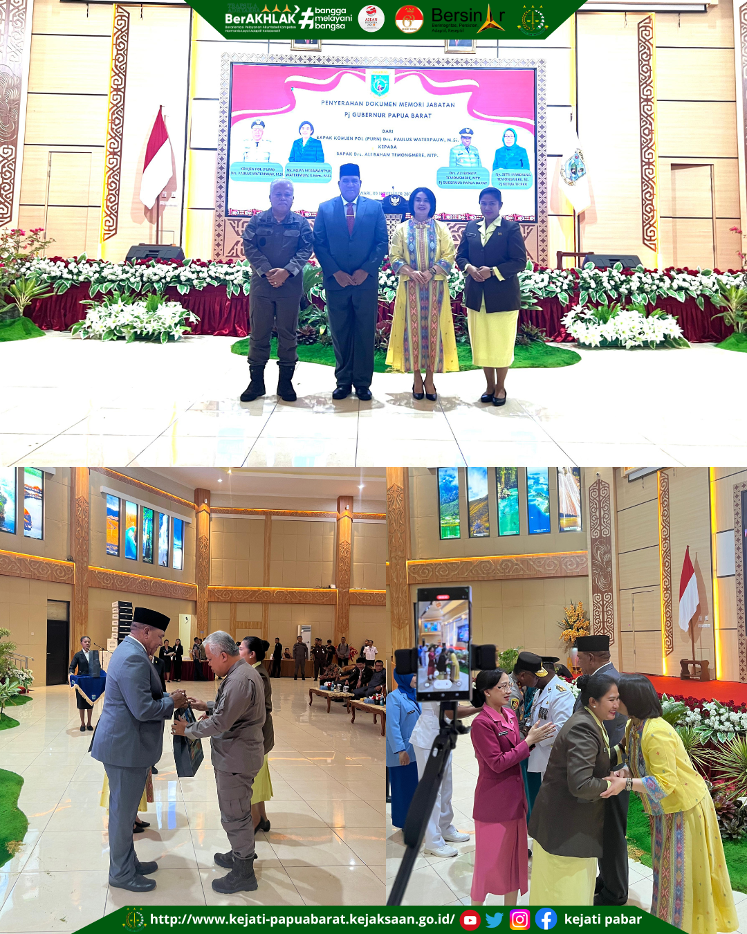 Kepala Kejaksaan Tinggi Papua Barat Dr. Harli Siregar, S.H., M.Hum. bersama Ketua IAD Wilayah Papua Barat Ny. Tiurmaida Harli Siregar menghadiri Sertijab PJ. Gubernur Papua Barat, bertempat di Gedung PKK Provinsi Papua Barat, Kamis, 09 November 2023.