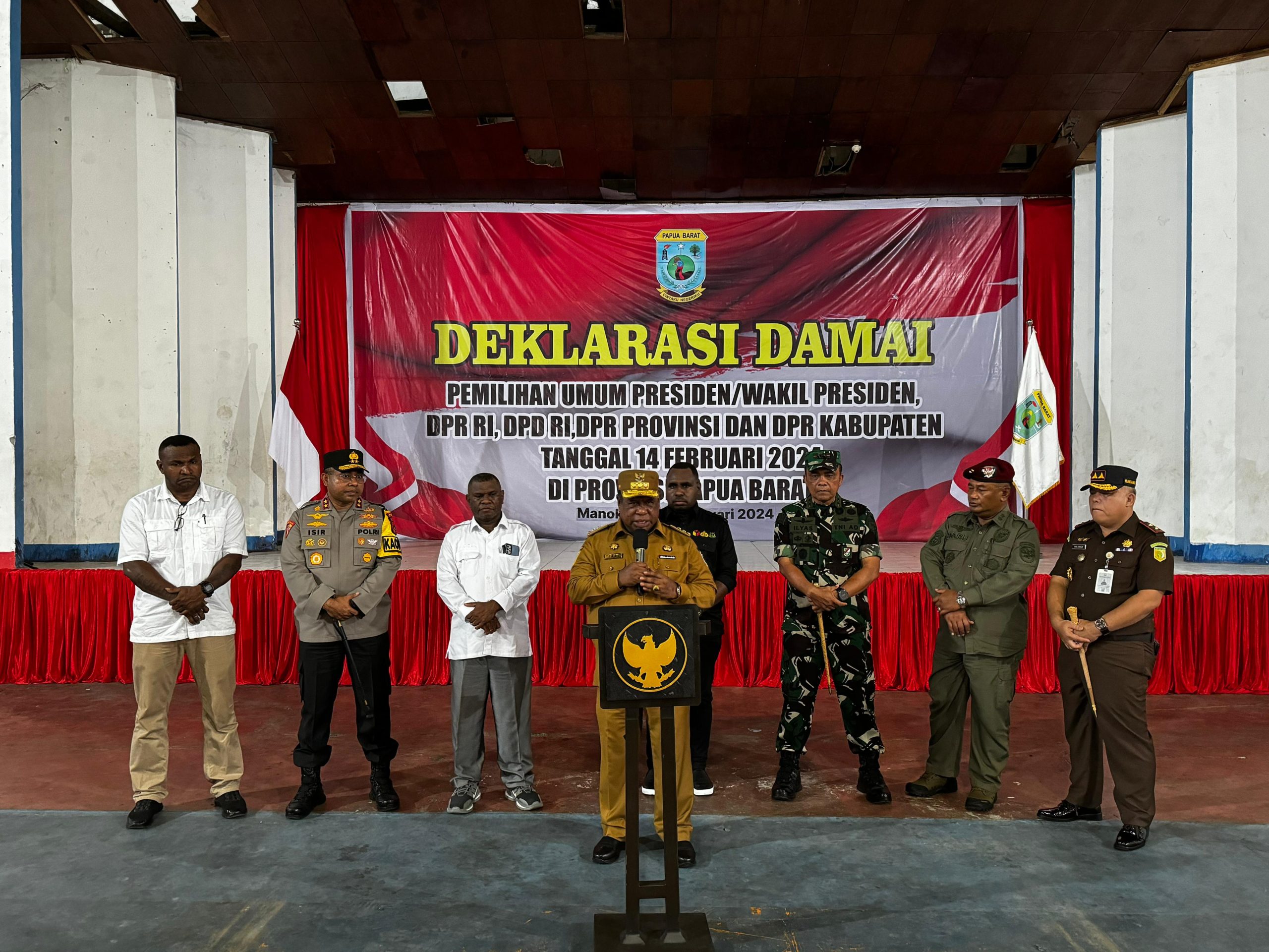 Kepala Kejaksaan Tinggi Papua Barat Dr. Harli Siregar, S.H., M.Hum menghadiri kegiatan Deklarasi Pemilu Damai bersama PJ. Gubernur Papua Barat Dr. H. Ali Baham Temongmere, M.TP, Jajaran Forkopimda Papua Barat, dan Ketua Partai Politik yang mengikuti Pemilihan Umum di Provinsi Papua Barat.