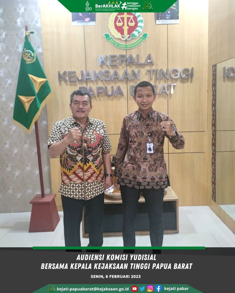 Kajati Papua Barat mengapresiasi kunjungan penghubung KY Provinsi Papua Barat melalui komunikasi dan sinergisitas yang telah dibangun dapat mewujudkan peradilan yang bersih di Papua Barat.