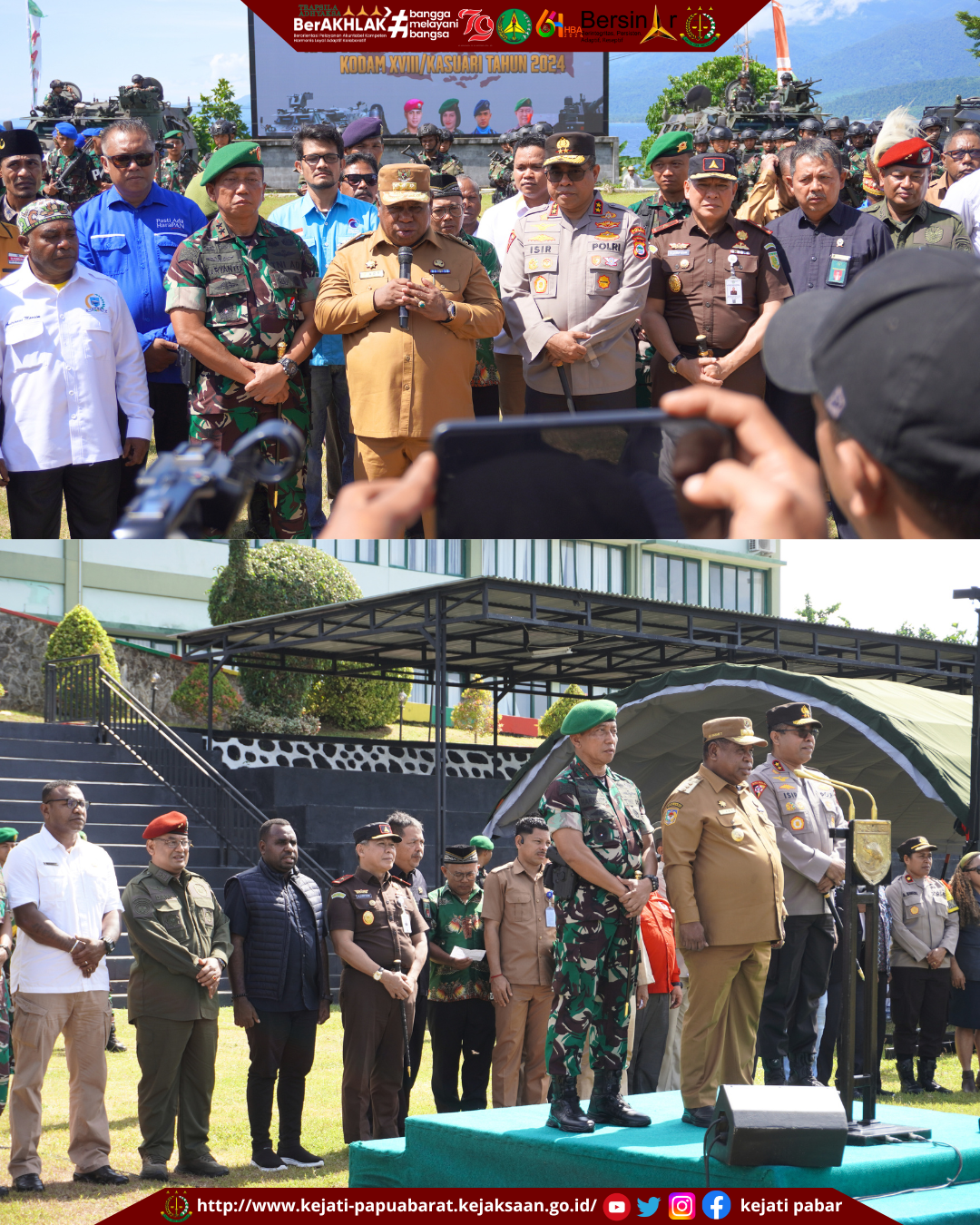 Selasa, 20 Agustus 2024 Pukul 09.00 WIT. Kepala Kejaksaan Tinggi Papua Barat Muhammad Syarifuddin, S.H., M.H. menghadiri Apel Gelar Pengamanan Pilkada Serentak Kodam XVIII/ Kasuari Tahun 2024.