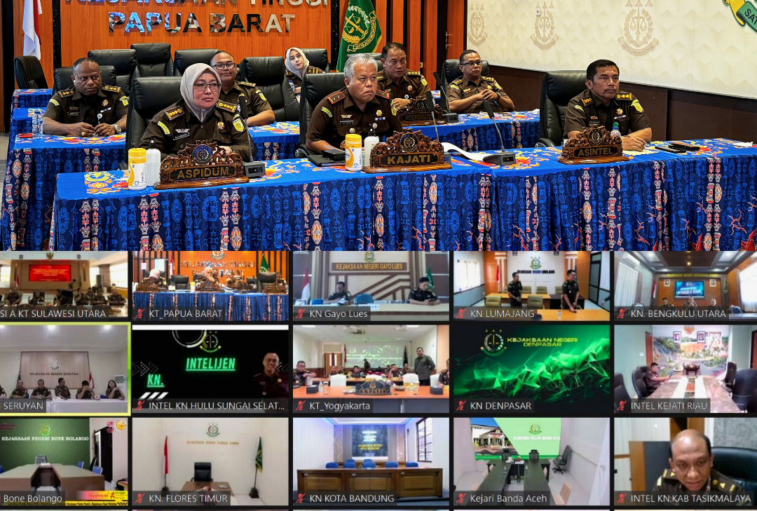 Turut hadir Asisten Intelijen Muhammad Bardan, S.H., M.H., dan Asisten Tindak Pidana Umum DJasmaniar, S.H., M.H. Rakor Virtual dilaksanakan bertempat di Aula Kantor Kejaksaan Tinggi Papua Barat, 13 Februari Tahun 2024.