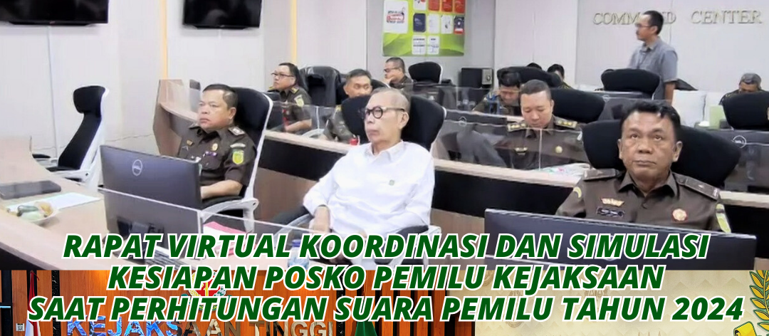 Kepala Kejaksaan Tinggi Papua Barat, Dr. Harli Siregar, S.H., M.Hum mengikuti Rapat Virtual Koordinasi dan Simulasi Kesiapan Posko Pemilu Kejaksaan Saat Perhitungan Suara Pemilu Tahun 2024.
