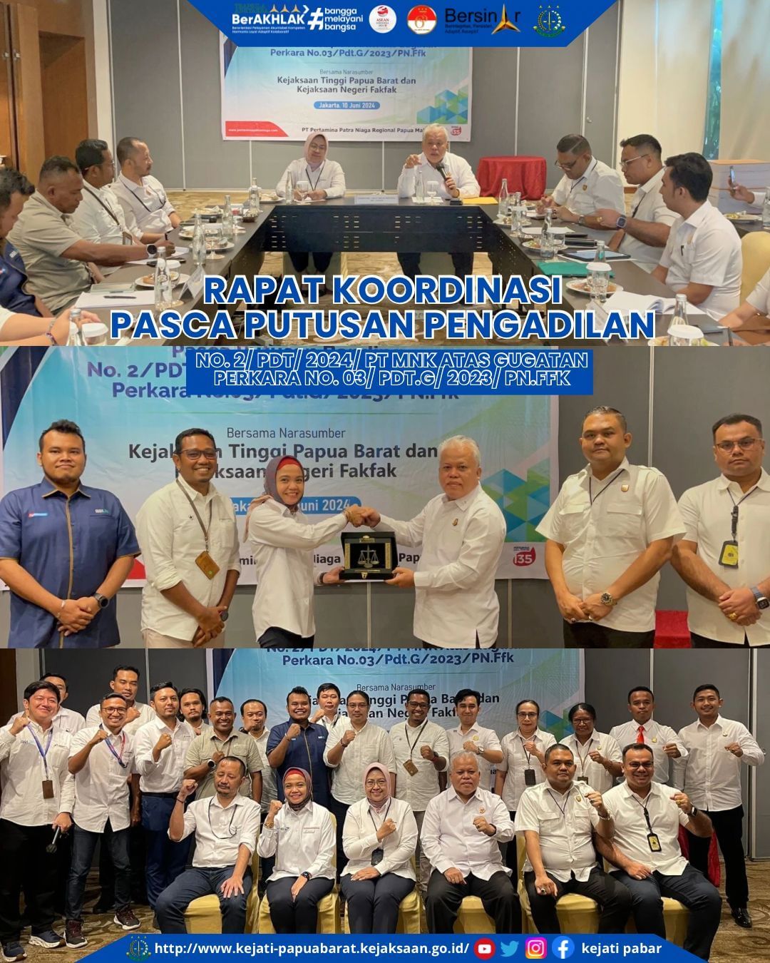 Senin, 10 Juni 2024 di Gran Melia Hotel Jakarta telah dilaksanakan Rapat Koordinasi Pasca Putusan Banding No. 2/PDT/2024/PT MNK atas Gugatan Perkara No.03/Pdt.g/2023/PN.Ffk.