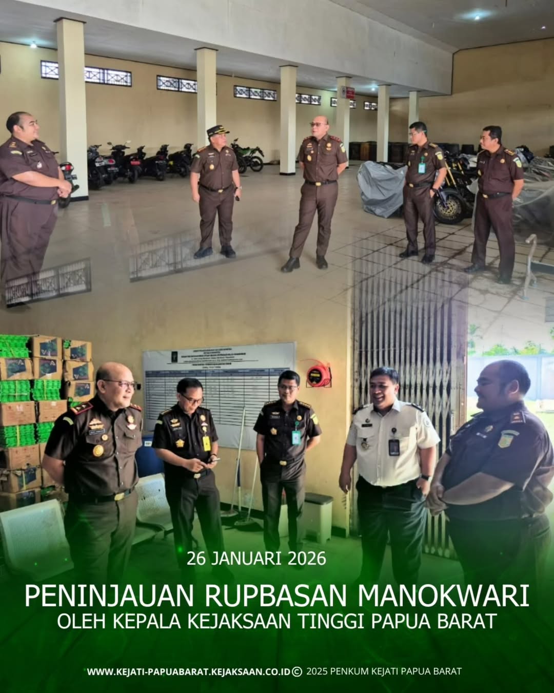 Senin, 26 Januari 2026 pukul 14.00 WIT bertempat di RUPBASAN MANOKWARI, Kepala Kejaksaan Tinggi Papua Barat, Basuki Sukardjono, S.H., M.H. melakukan Peninjauan Rupbasan Manokwari, serta pengecekan barang bukti yang berada di Rupbasan Manokwari.