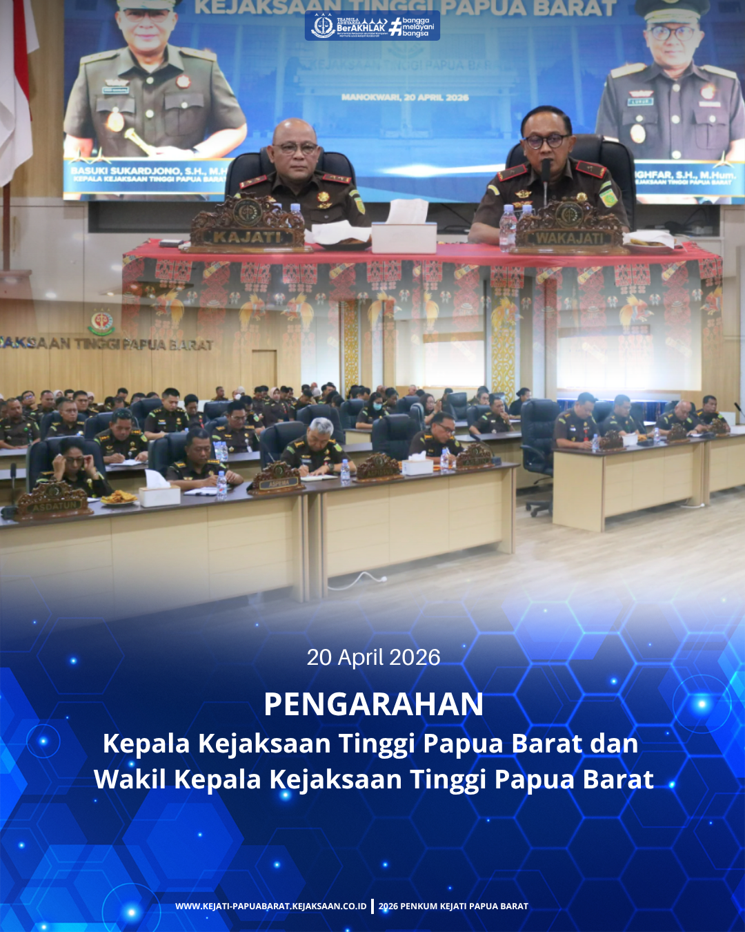 Pada hari Senin, 20 April 2026 bertempat di Aula Kejaksaan Tinggi Papua Barat telah dilaksanakan Briefing Pegawai Oleh Kepala Kejaksaan Tinggi Papua Barat dan Wakil Kepala Kepala Kejaksaan Tinggi Papua Barat.