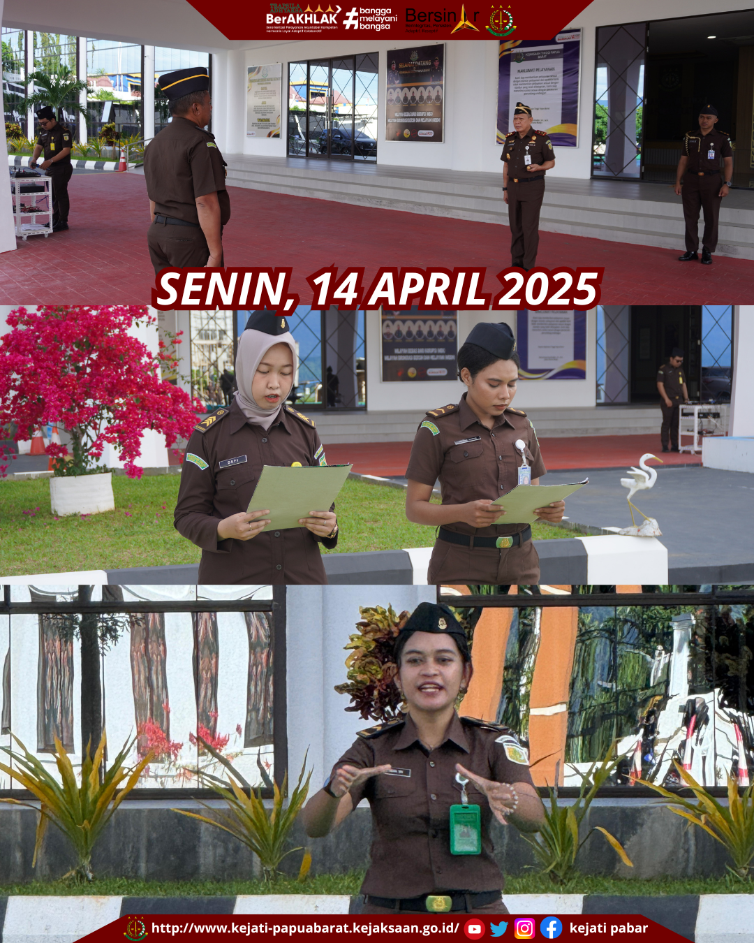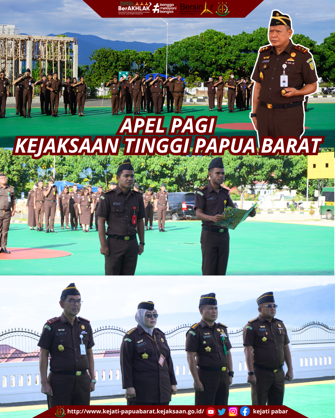 Pada hari Senin, 14 April 2024 bertempat di Halaman Kantor Kejaksaan Tinggi Papua Barat dilaksanakan Apel Pagi Kejaksaan Tinggi Papua Barat.