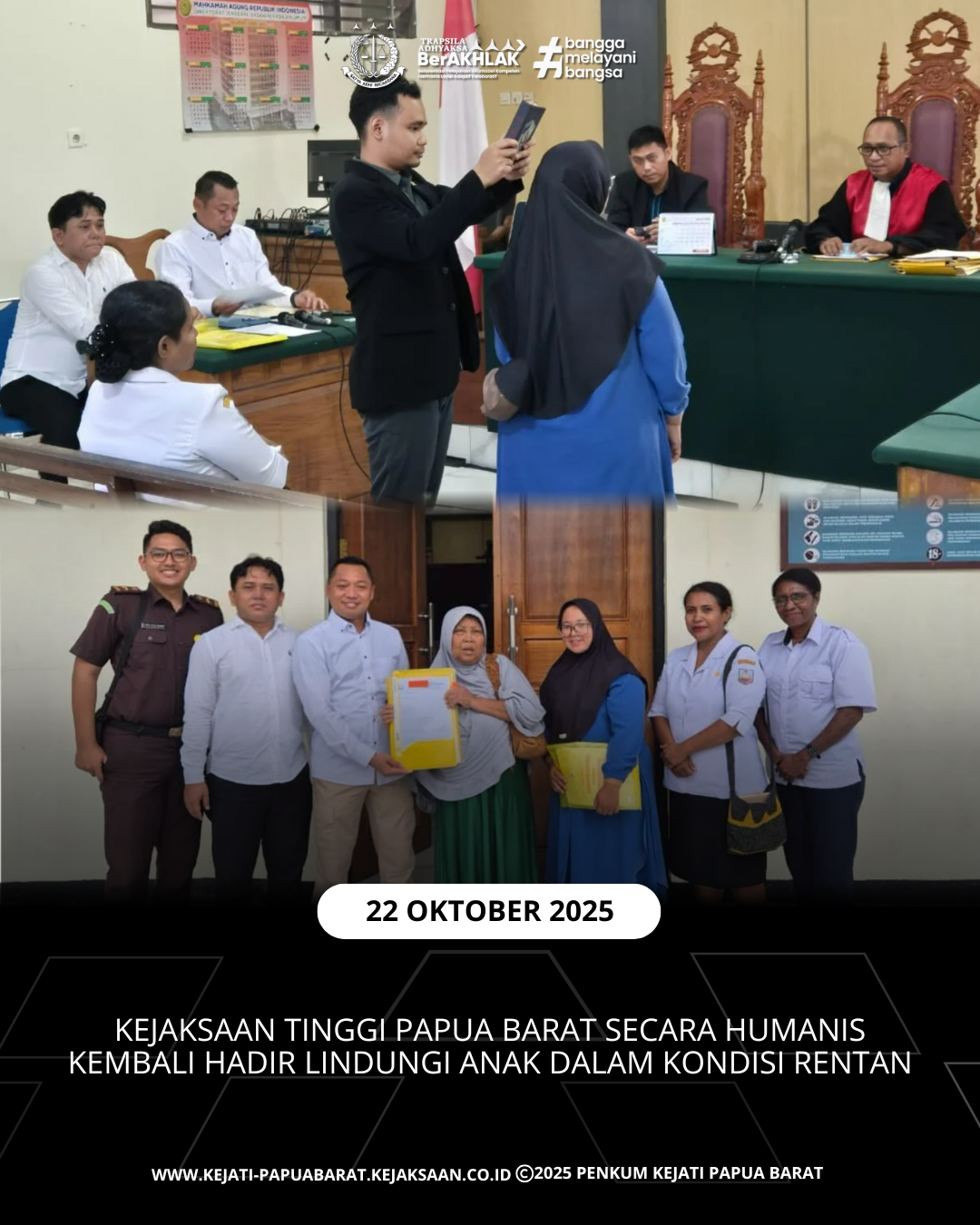 JPN Kejati Papua Barat melalui Kejari Manokwari mendaftarkan Pengajuan penetapan perwalian anak ke PN Manokwari pada hari Jum’at, 10 Oktober 2025 yang lalu. Selanjutnya setelah melalui rangkaian persidangan, dilakukan pemeriksaan dokumen dan saksi”.