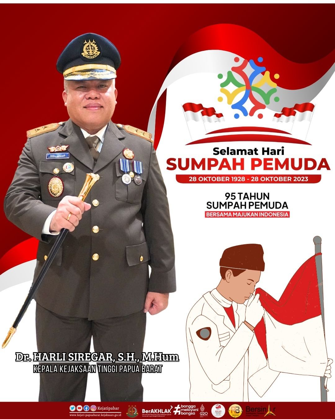 Kepala Kejaksaan Tinggi Papua Barat Dr. Harli Siregar, S.H., M.Hum beserta jajaran mengucapkan selamat memperingati hari Sumpah Pemuda ke-95.