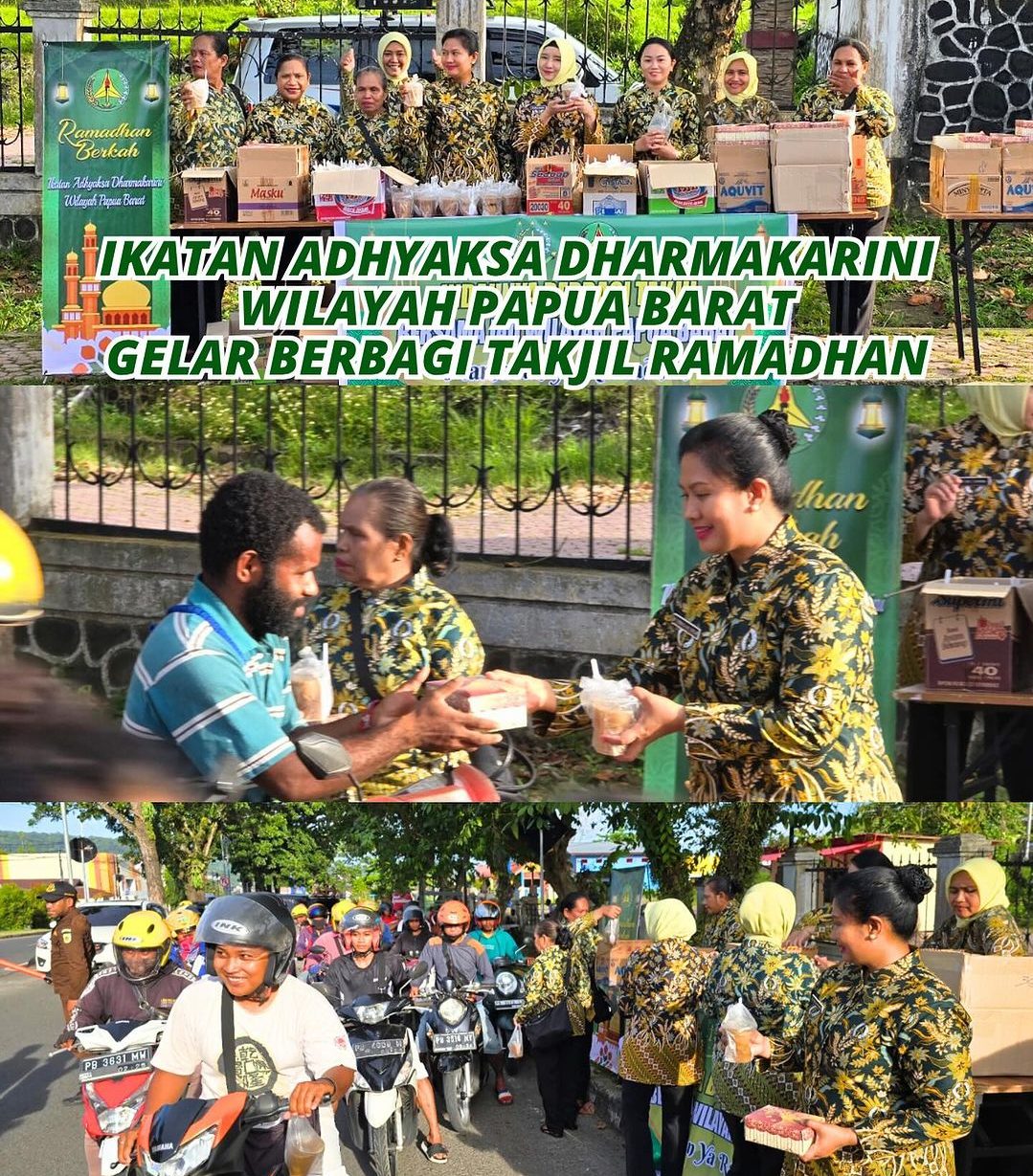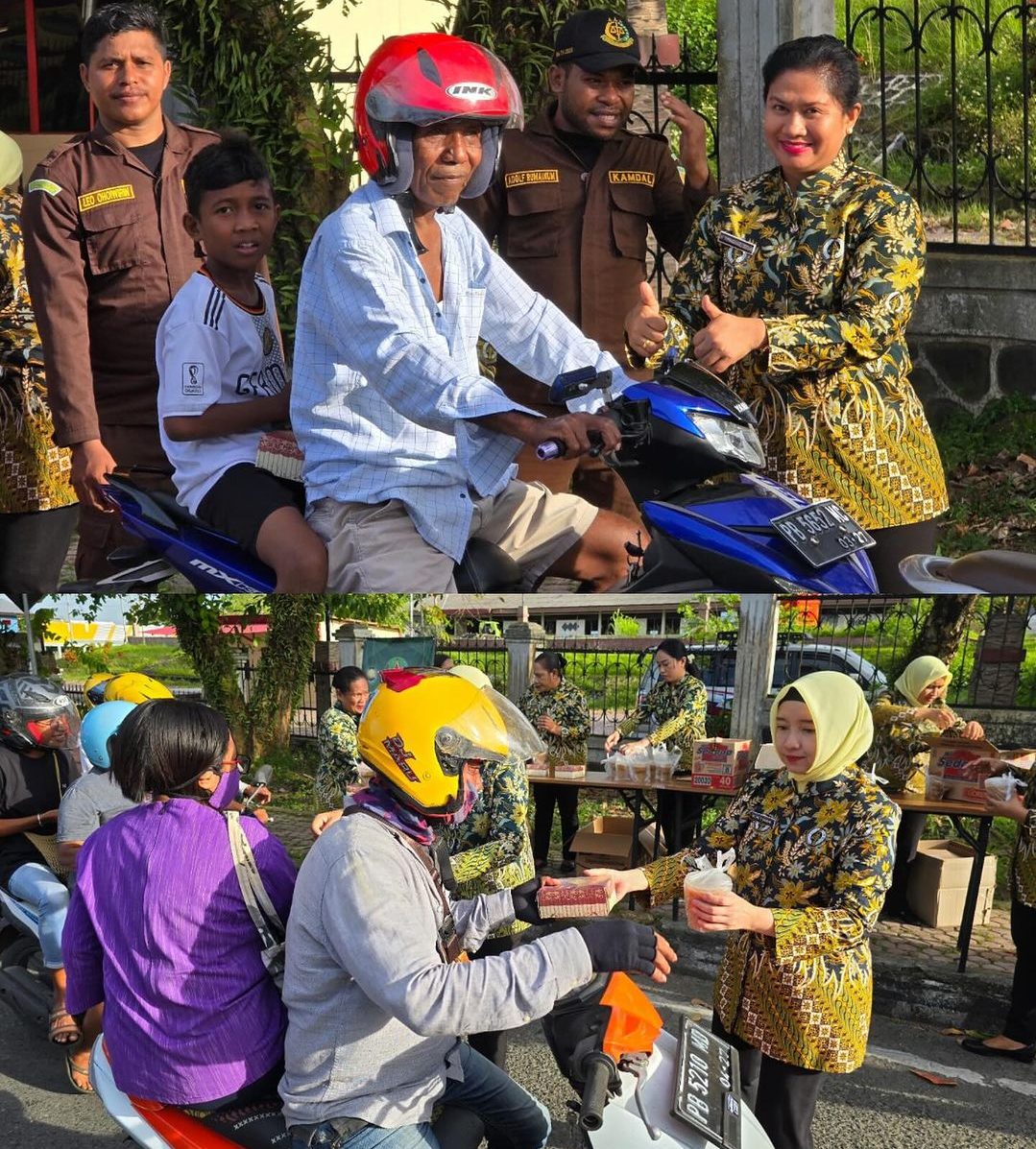 Ketua IAD Wilayah Papua Barat Tiurmaida Harli Siregar bersama Wakil Ketua IAD Wilayah Papua Barat Nurmeilina Teuku Rahman menggelar Giat Berbagi Takjil kepada Masyarakat bertempat di Depan Kantor Kejaksaan Tinggi Papua Barat, Selasa 26 Maret 2024.