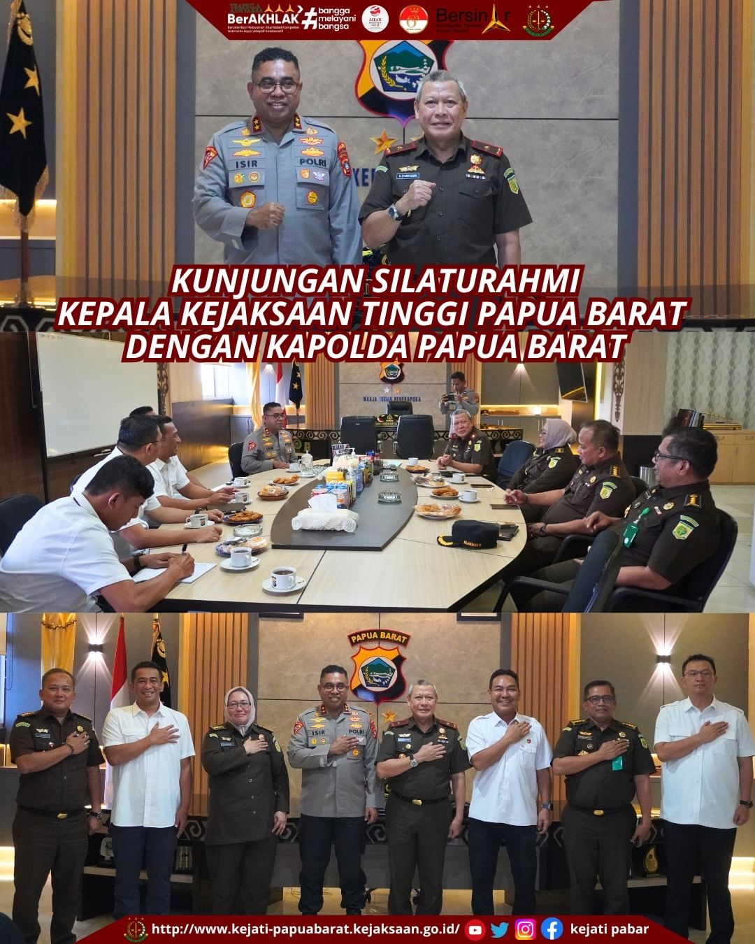 Rabu, 17 Juli 2024, pukul 16.00 WIT, Kunjungan silaturahmi Kepala Kejaksaan Tinggi Papua Barat beserta para Asisten dengan Kapolda Papua Barat Irjen Pol. Jhonny Eddison Issir, bertempat di ruang kerja Kapolda Papua Barat.