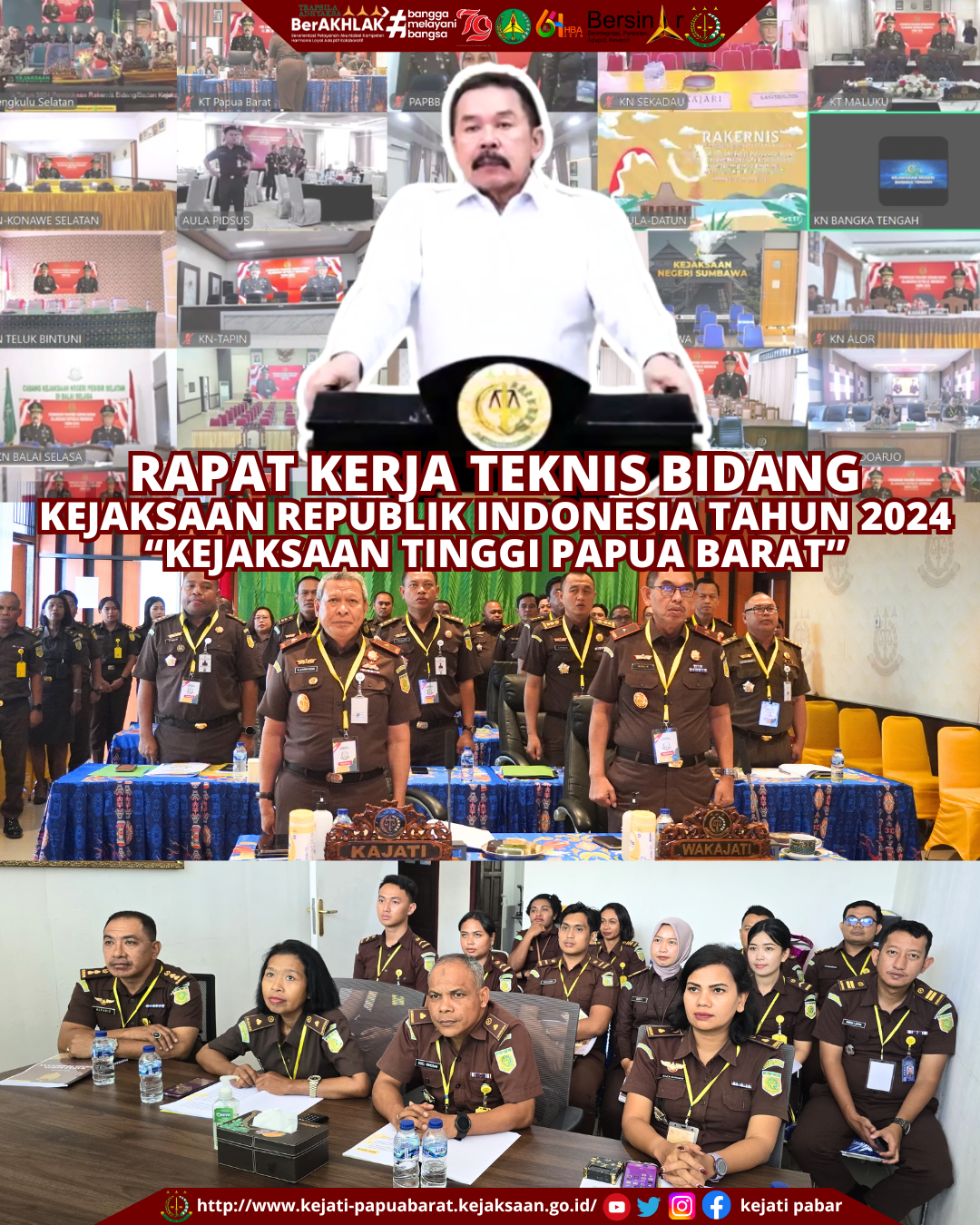 Kepala Kejaksaan Tinggi Papua Barat Muhammad Syarifuddin, S.H., M.H., mengikuti Rapat Kerja Teknis Bidang Kejaksaan Republik Indonesia secara Virtual, bertempat di Aula Kantor Kejaksaan Tinggi Papua Barat, Hari Selasa 04 September 2024 – Rabu 05 September 2024.