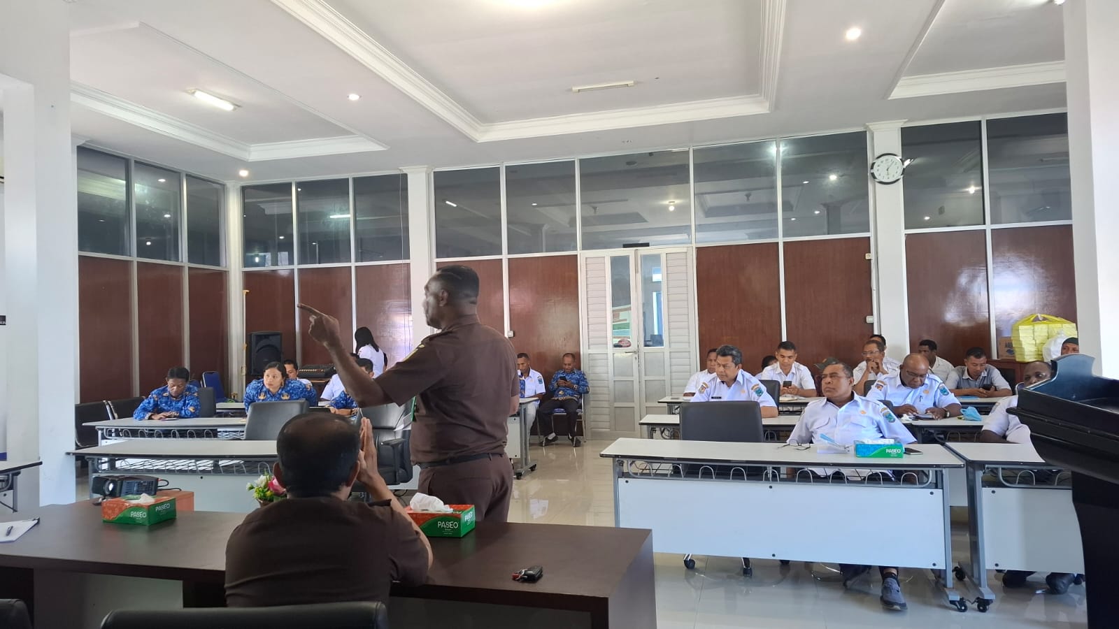 Adapun materi yang disampaikan oleh Tim Penerangan Hukum Kejaksaan Tinggi Papua Barat terkait Tugas Pokok dan Fungsi Kejaksaan Tinggi Papua Barat Dalam Pencegahan Tindak Pidana Korupsi. Bertindak sebagai pemberi materi yaitu Kasi Uheksi pada Pidmil Benony Andryan Kombado, S.H., M.H., Kasi Penkum Billy Arthur CDS. wuisan, S.H., M.H., Kasi E Hadjat, S.H.