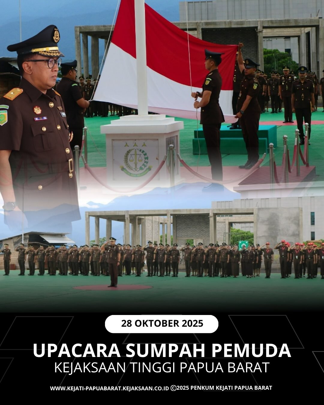 Selasa 28 Oktober 2025 Pukul 07.30WIT bertempat di Halaman Kantor Kejaksaan Tinggi Papua Barat, Plh. Kepala Kejaksaan Tinggi Papua Barat selaku Inspektur Upacara memimpin Upacara Hari Sumpah Pemuda dengan tema “Pemuda Pemudi Bergerak, Indonesia Bersatu”.