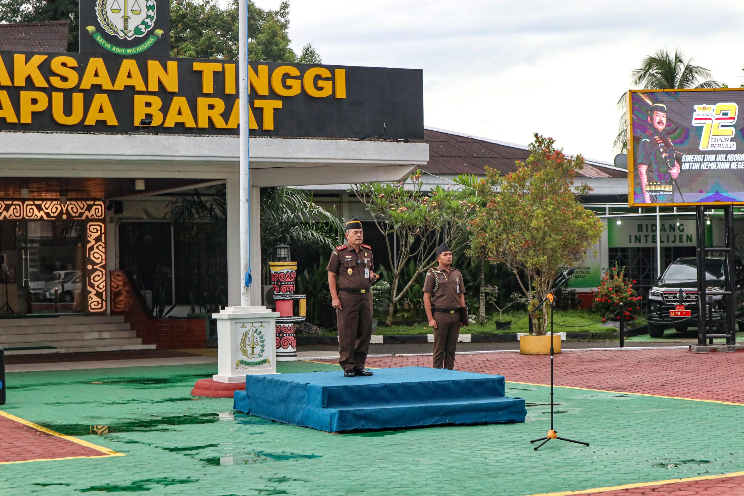 Upacara Peringatan HUT Ke-72 Tahun PERSAJA dilaksanakan dihalaman kantor Kejaksaan Tinggi Papua Barat, Senin, 8 Mei 2023 .